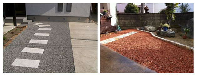瓦チップを家の回りに敷き詰めるとジャリッ!ジャリッ!と音がしますので防犯用には最適です。